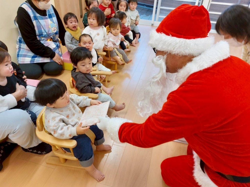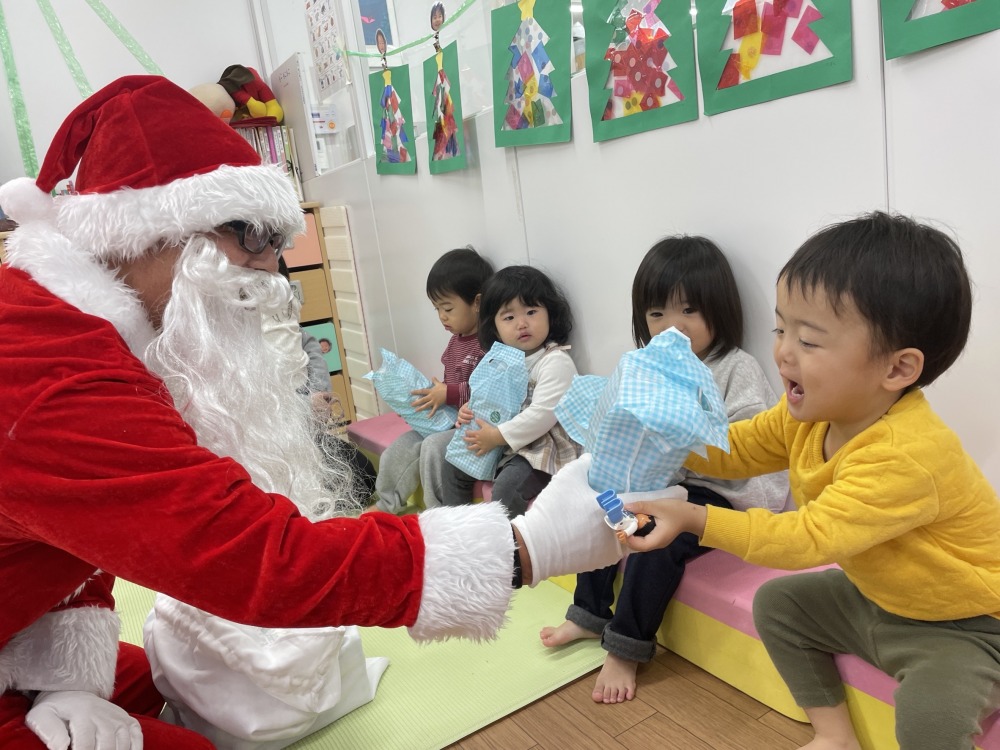 乳児クラスはクラスでサンタクロースに一人ずつプレゼントをもらいました。