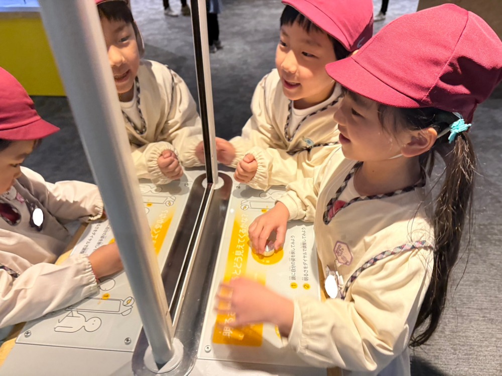 コジマ子どもサイエンスパークに到着して中に入ると、体のしくみや栄養素・宇宙・鏡等のコーナーがあり、体験しながら不思議さを感じたり、楽しんだりする姿が見られました。
